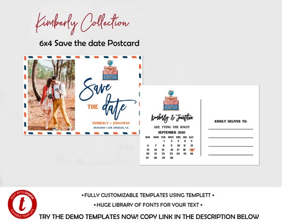 Fully Editable Save The Date Postcard Template Diy Travel Theme Photo Card Printable Save The Date Announcement Templett Kc177 Std