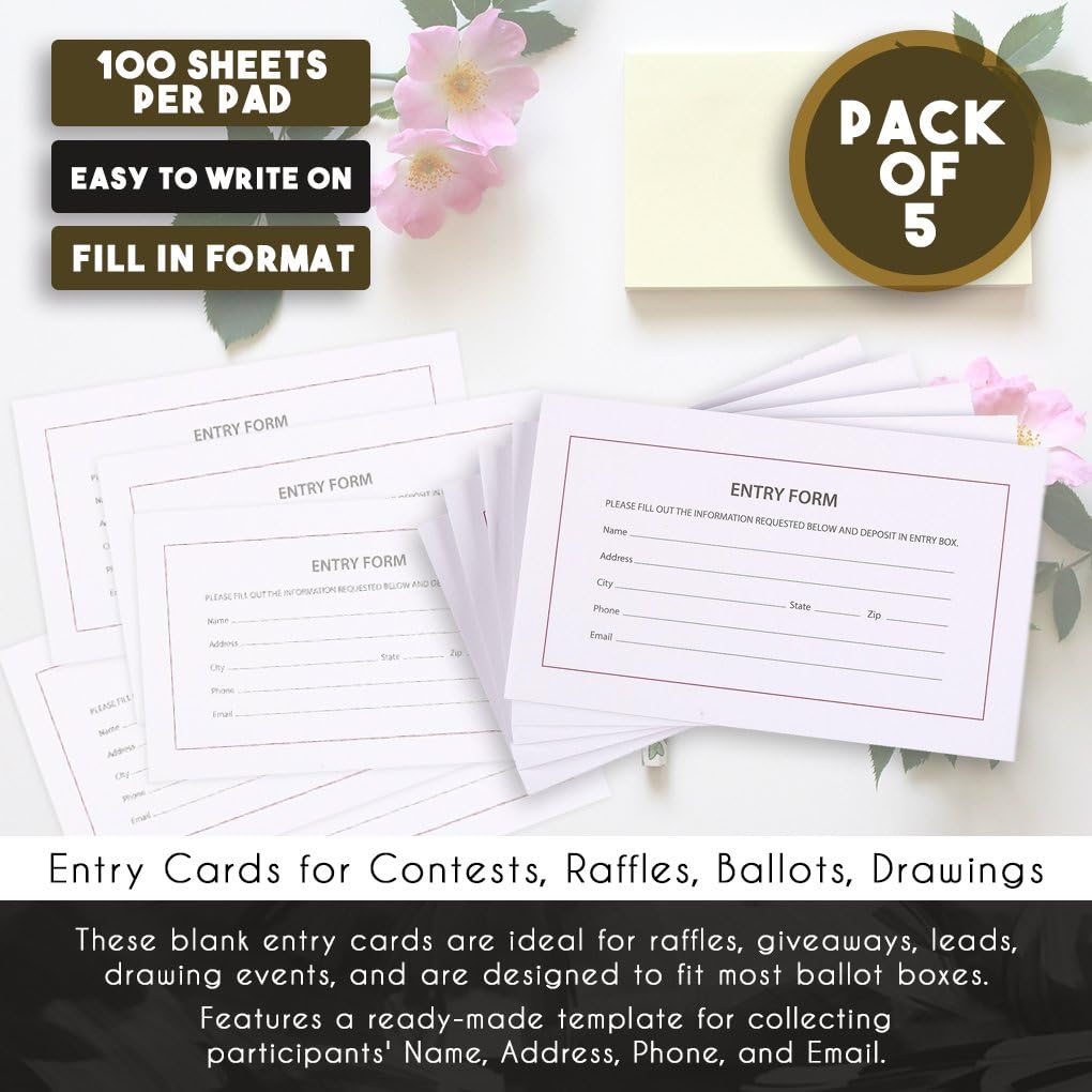 500 Entry Forms 5 Pads With 100 Sheets Per Pad Entry Cards For Contests Raffles Ballots Drawings 6 2 X 3 7 Inches