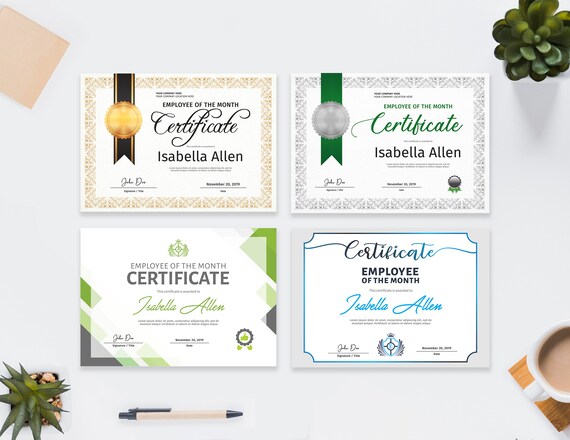 Employee Of The Month Certificate Bundle Certificate Template Simple Design Customized Printable Instant Download Editable Ms Word