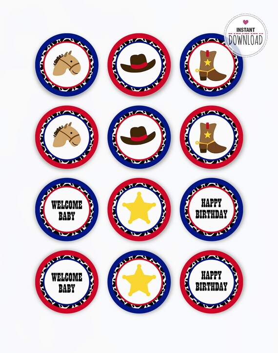 Instant Download Cowboy Cupcake Topper Printable Pdf