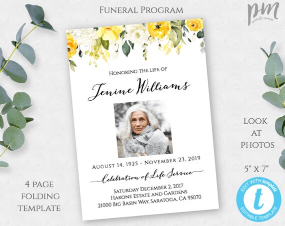 Yellow Floral Funeral Template Printable Funeral Template Instant Download Funeral Program Template In Loving Memory Editable Obituary Yff