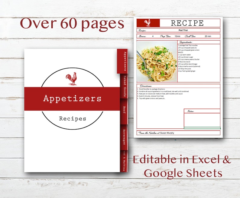 Editable Recipe Binder Kit Farmhouse Recipe Template Recipe Journal Sheet Full Sheet Recipe Card Excel Google Docs Printable