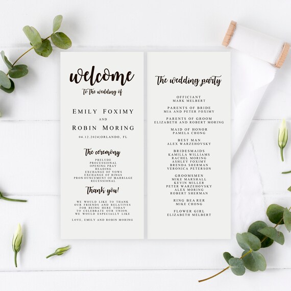 Wedding Program Template Download Instantly Edit