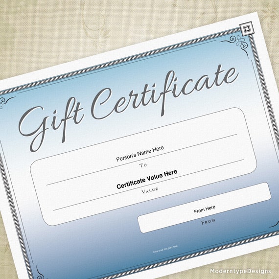 Blue Gift Certificate Printable Gift Voucher Coupon Card Custom Award Editable Template Digital File Instant Download Gic001