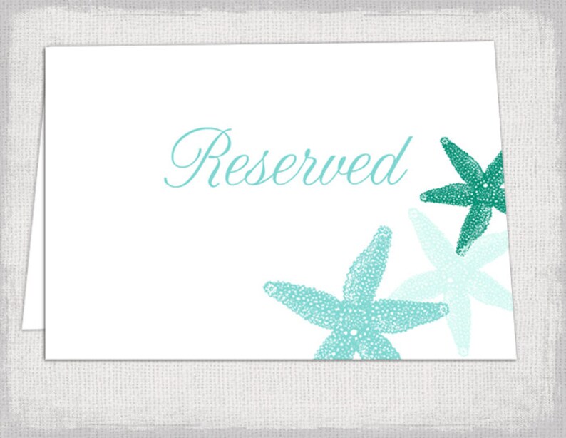Beach Reserved Card Template Starfish Printable And Editable Table Sign Tent Card Ocean Blue Emerald Green Aqua You Edit Word Download