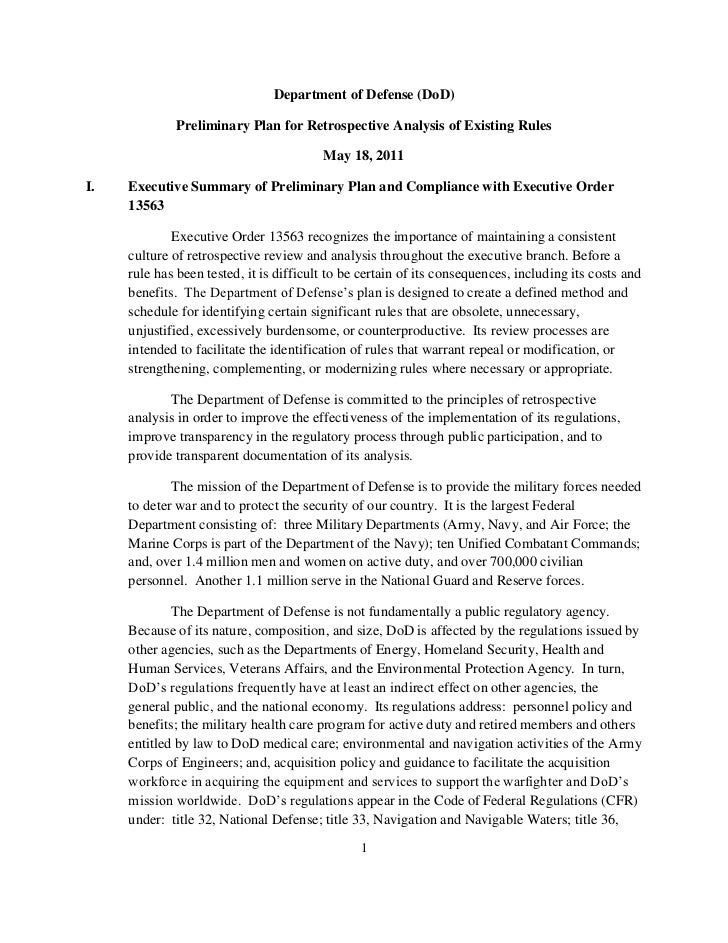 Department Of Defense Preliminary Regulatory Reform Plan