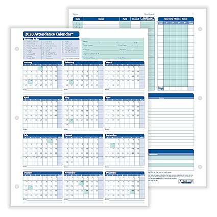 2020 Attendance Calendar Form Pack 25 Per Pack
