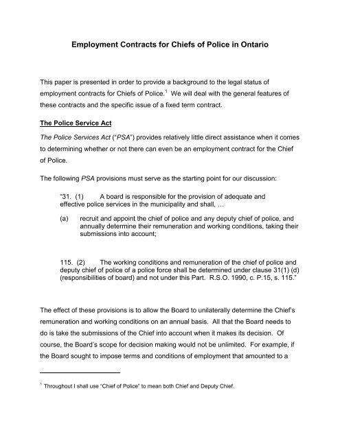 Employment Contracts For Chiefs Of Police In Ontario Hicks