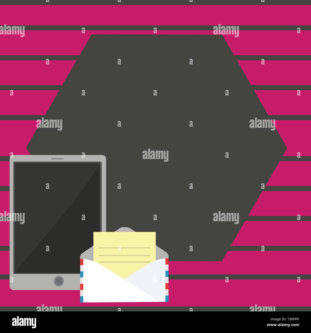 Open Envelope With Paper And Blank Tablet Screen On Colorful