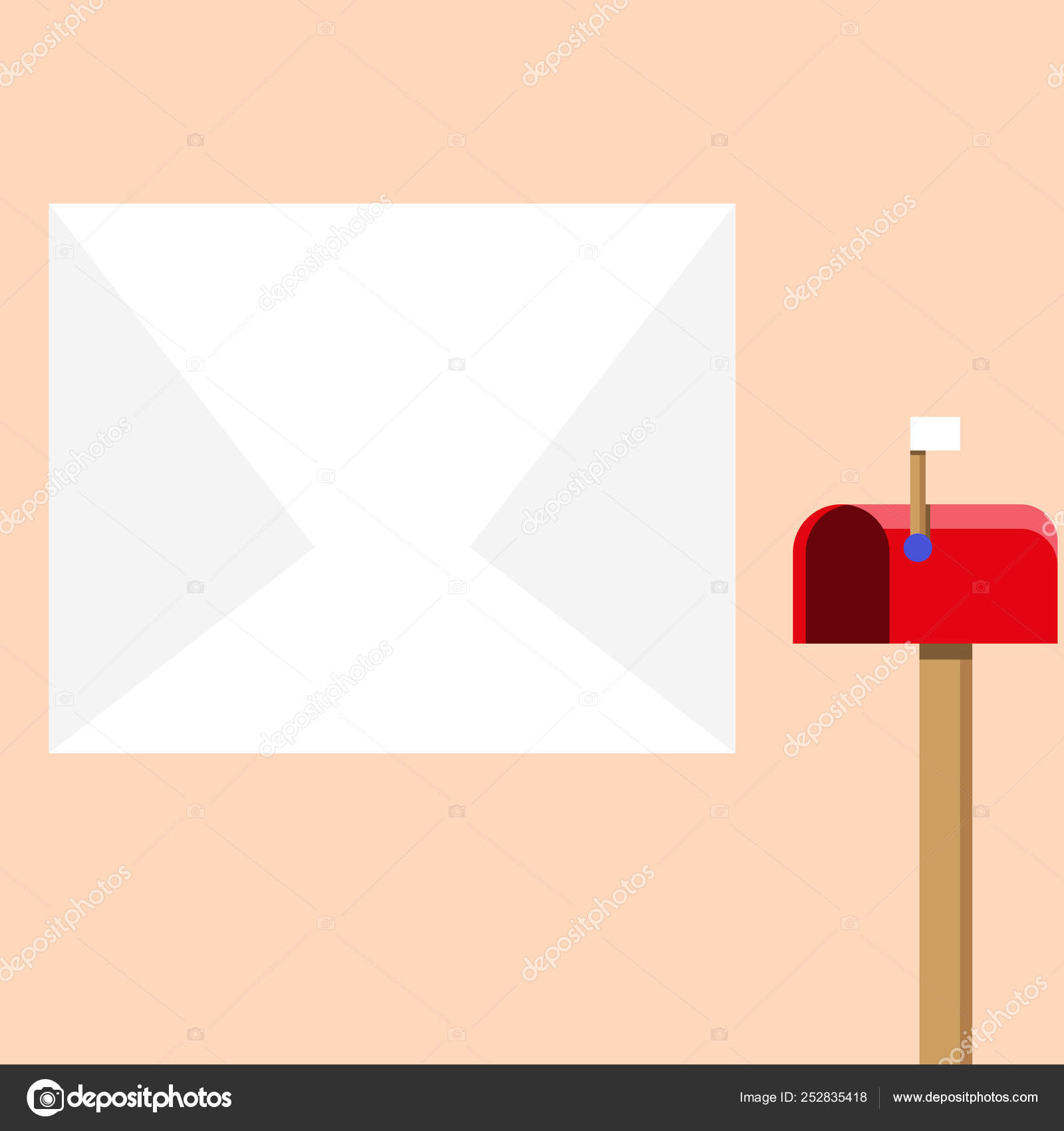 Blank Big White Envelope Beside Red Mailbox With Small Flag