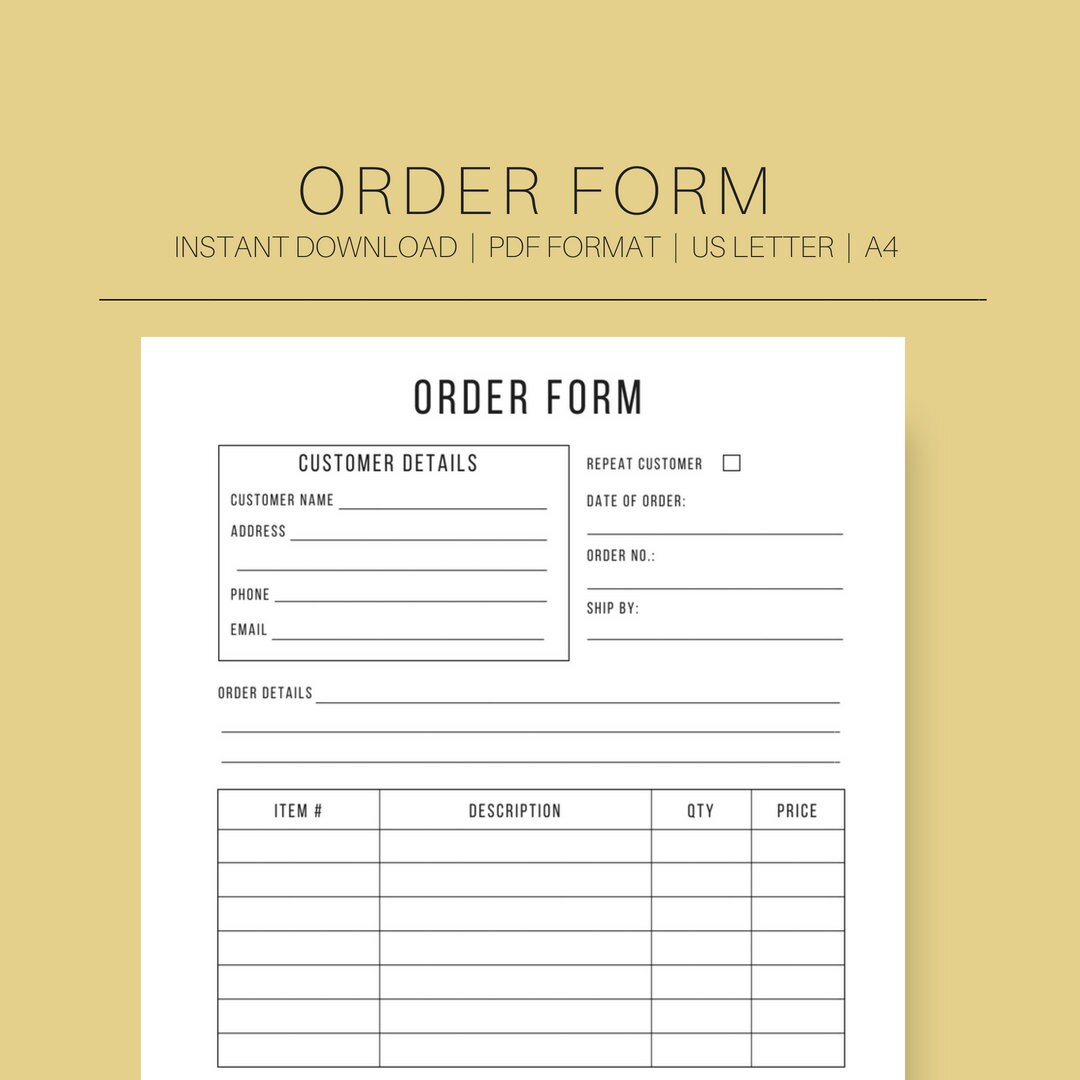 Order Form Order Form Template Customer Form Order Template Small Business Form Printable Order Form Instant Download