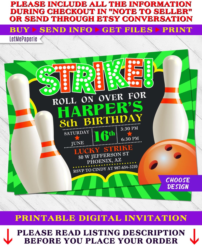 Bowling Invitation Bowling Party Invitation Bowling Invite Bowling Party Bowling Birthday Party Invite Bowling Printable Girl Boy