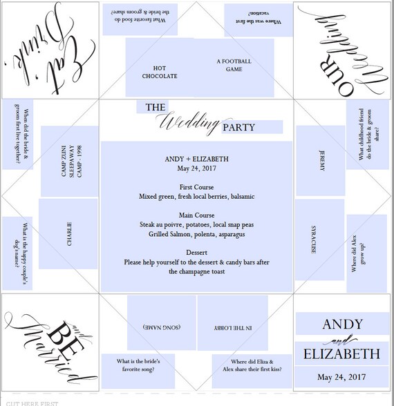Printable Wedding Program Menu Favor Cootie Catcher Fortune Teller Wedding Program Template Printable Template Extra Flexible Version