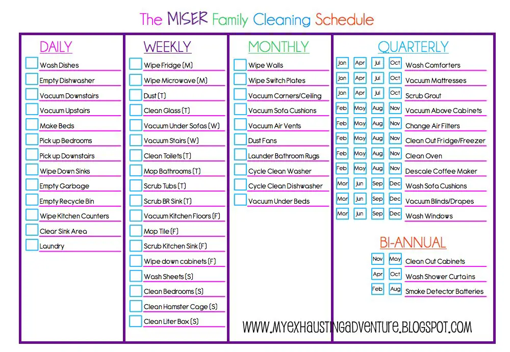 House Cleaning Schedules Checklists Daily Weekly Monthly