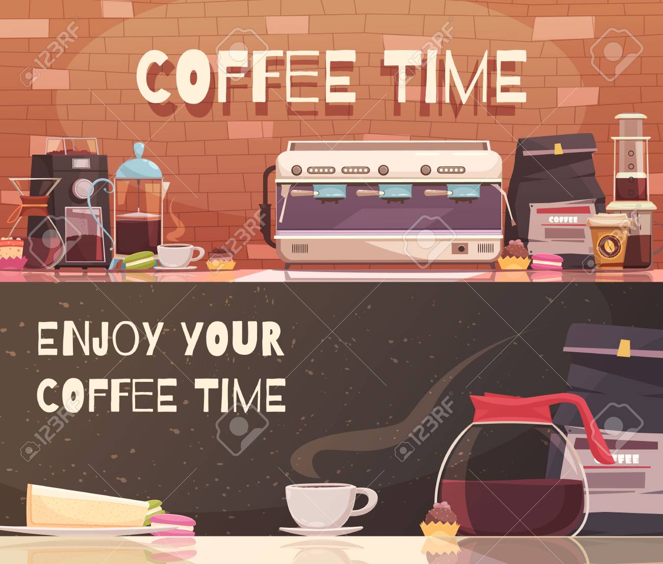 Coffee Time Two Horizontal Banners With Automatic And Manual
