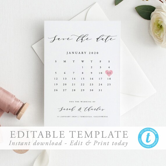 Calendar Save The Date Template Printable Save Our Date Invitation Templett Modern Simple Editable Invite Calligraphy Diy 06