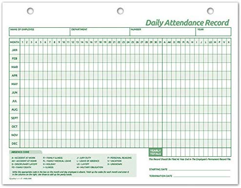 Employee Daily Attendance History Records Letter Size Cards 25 Forms