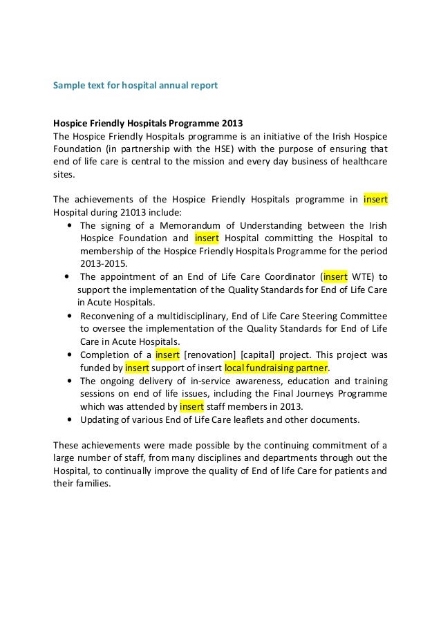 Sample Text For Hospital Annual Report From Acute Hospital