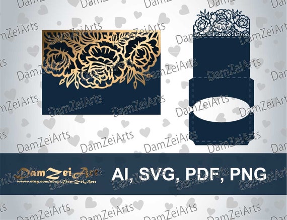Envelope Template 5x7 Piones Wedding Invitation Card Laser Cut Ai Svg Pdf Png Vector File Pattern Download