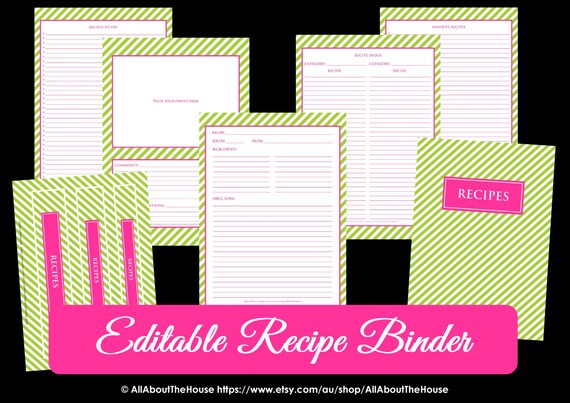 Editable Recipe Binder Printables Recipe Sheet Recipe Card Recipes To Try Template Pdf Editable Binder Cover Spine Favorite Recipes Preppy