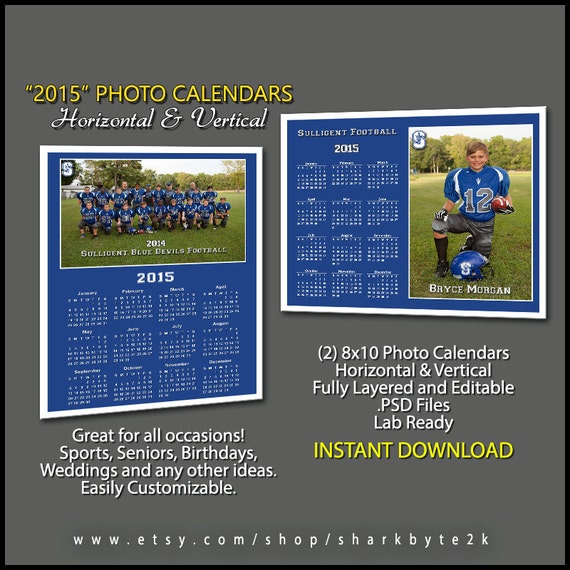 2015 8x10 Photo Calendar Horizontal And Vertical Template For Sport Wedding Birthday Senior Anniversary Photography For Photoshop Psd