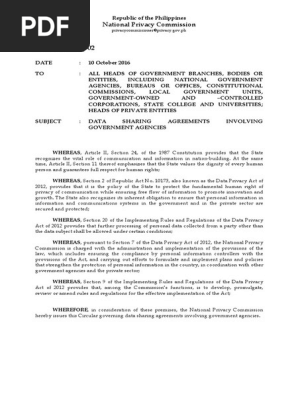 Npc Circular 16 02 Data Sharing Agreements Involving