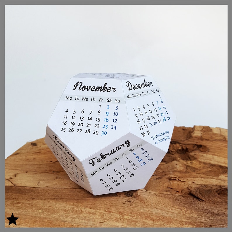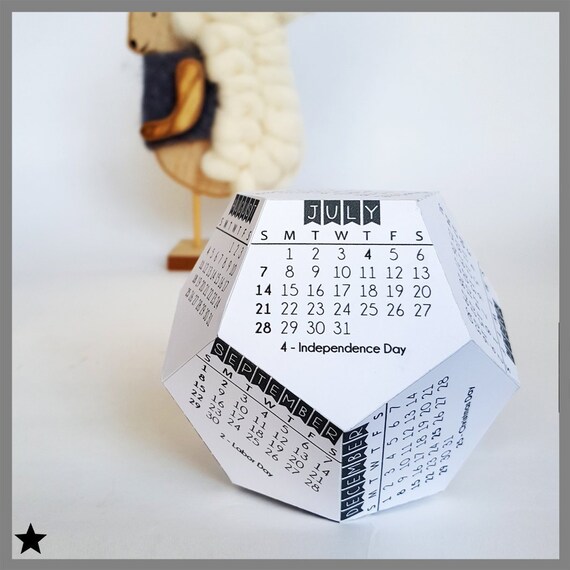 Printable Calendar 2019 Desk Calendar Dodecahedron Calendar 3d Printable Paper Downloadable Calendar Cubicle Accessory Coworker Gift