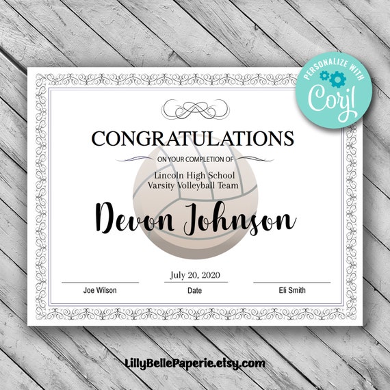 Editable Volleyball Certificate Template Printable Certificate Template Volleyball Certificate Template Personalized Diploma Certificate