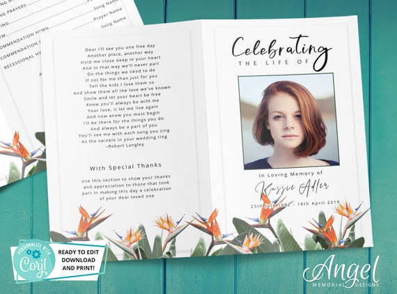 Funeral Program Template Funeral Card Template Editable Funeral Program Obituary Program Template Birds Of Paradise Ds011