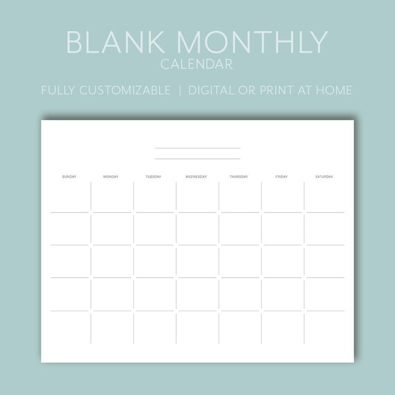 Blank Monthly Calendar Editable Printable Planner Instant Download Pdf Fully Customizable