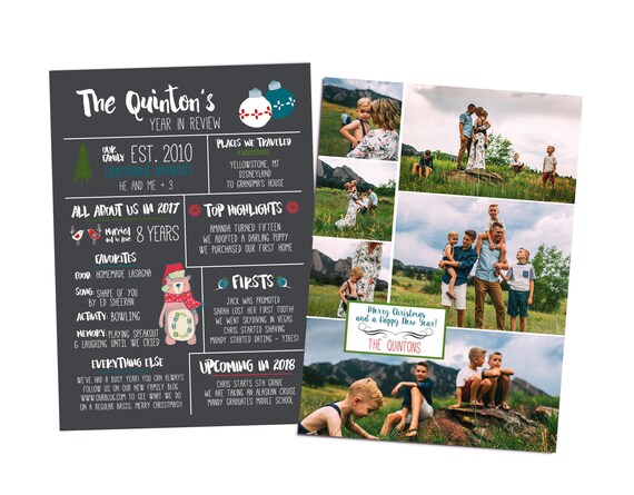 Christmas Card Photoshop Template Year In Review Family Newsletter 5x7 Photo Card Instant Download Or Printable Yir04