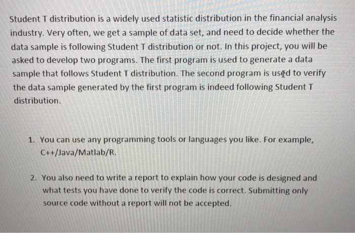 Solved Student T Distribution Is A Widely Used Statistic