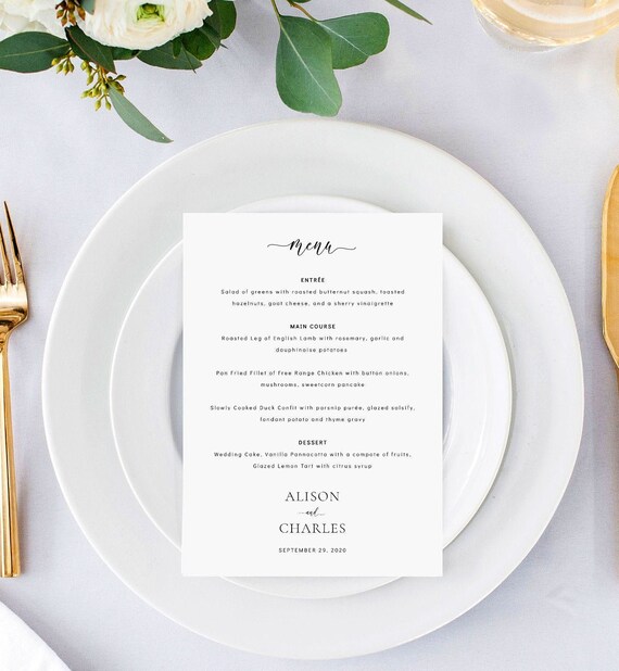 Wedding Menu Template Classic Formal Dinner Menu Card Printable Menu Editable Menu Instant Download Minimalist Menu Cards 5x7 4x6