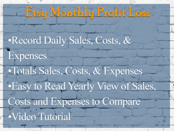 Etsy Spreadsheet Monthly Profit Loss Income Template Calculates Sales Costs With Video Instructions Excel Or Google Sheets