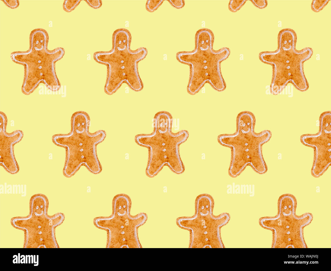 Seamless Watercolor Pattern With Brown Christmas Gingerbread