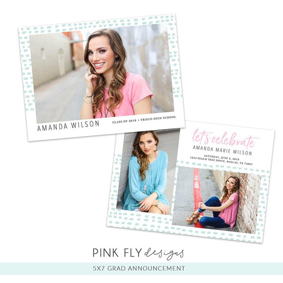 Senior Graduation Announcement Mint Dash Photoshop Template