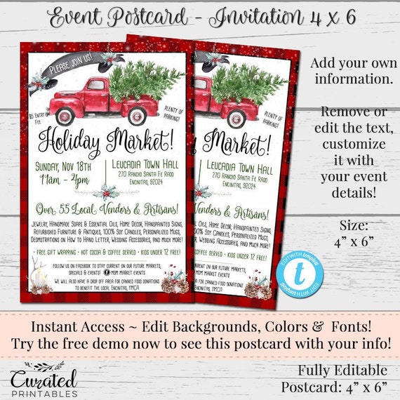Holiday Event Invitation Holiday Invitation Template Printable Diy Instant Download Postcard Editable Invitation Diy 4 X 6 Postcard