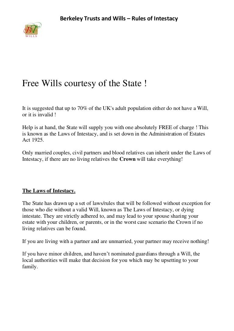 The Laws Of Intestacy Free Wills Courtesy Of The State