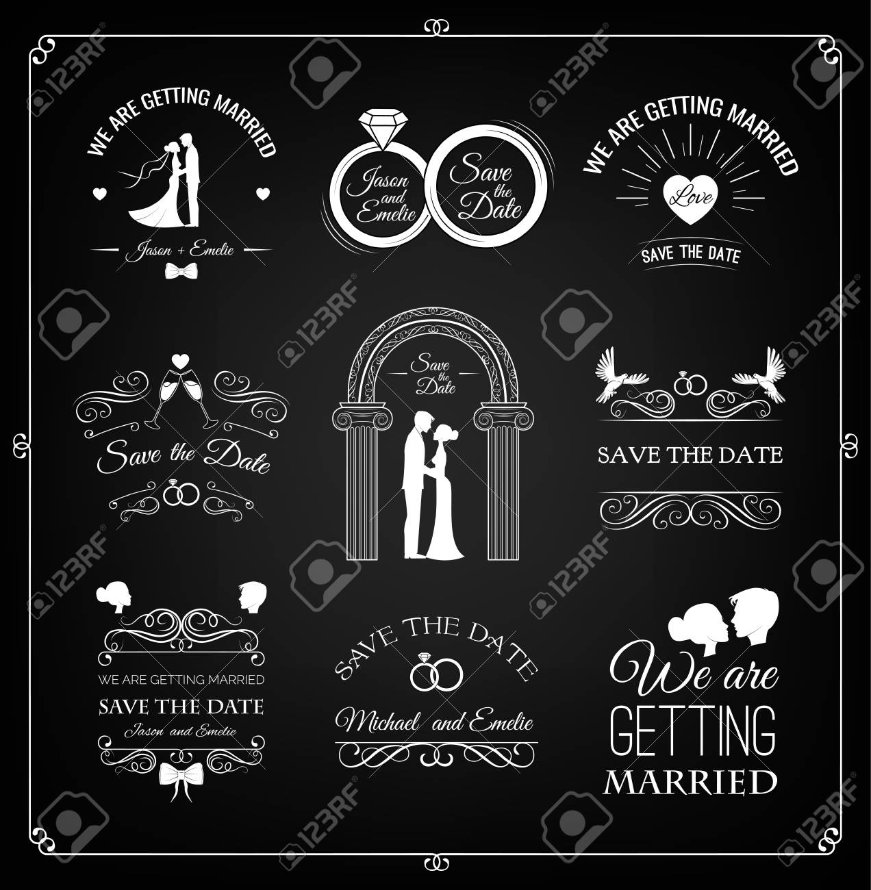 Set Of Wedding Invitation Template Vintage Design Elements