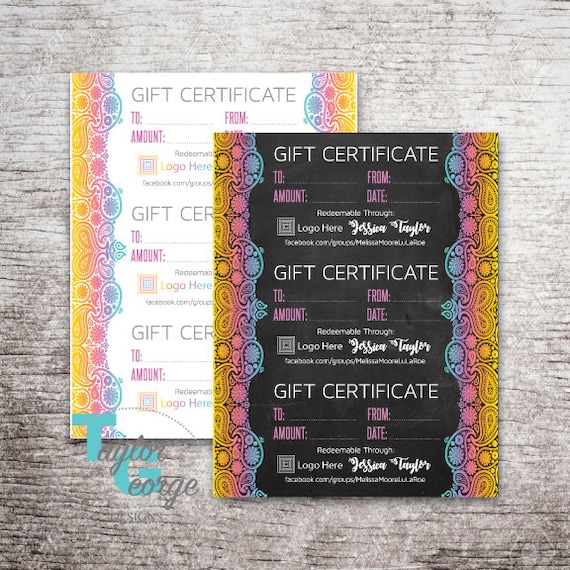 Printable Gift Certificate Template Custom Gift Certificates Chalkboard Paisley Gift Certificate Shabby Chic Gift Certificate Business
