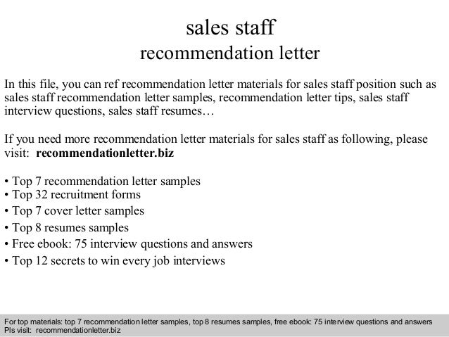 Sales Staff Recommendation Letter