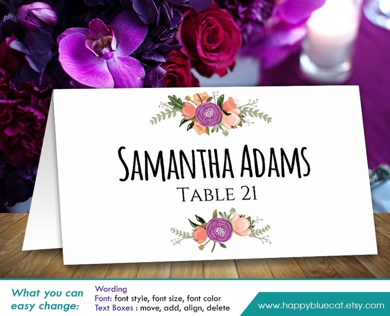 Diy Printable Wedding Place Card Template Instant Download Editable Text Rustic Vintage Floral 3 5 X2 Microsoft Word Hbc4n V2
