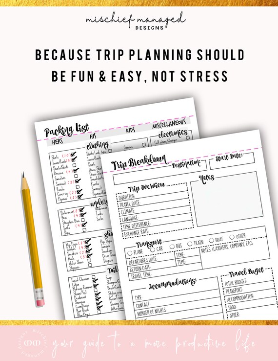 Travel Planner Itinerary Template Packing Checklist Travel Checklist Vacation Planning Holiday Planning Trip Planner Travel Journal
